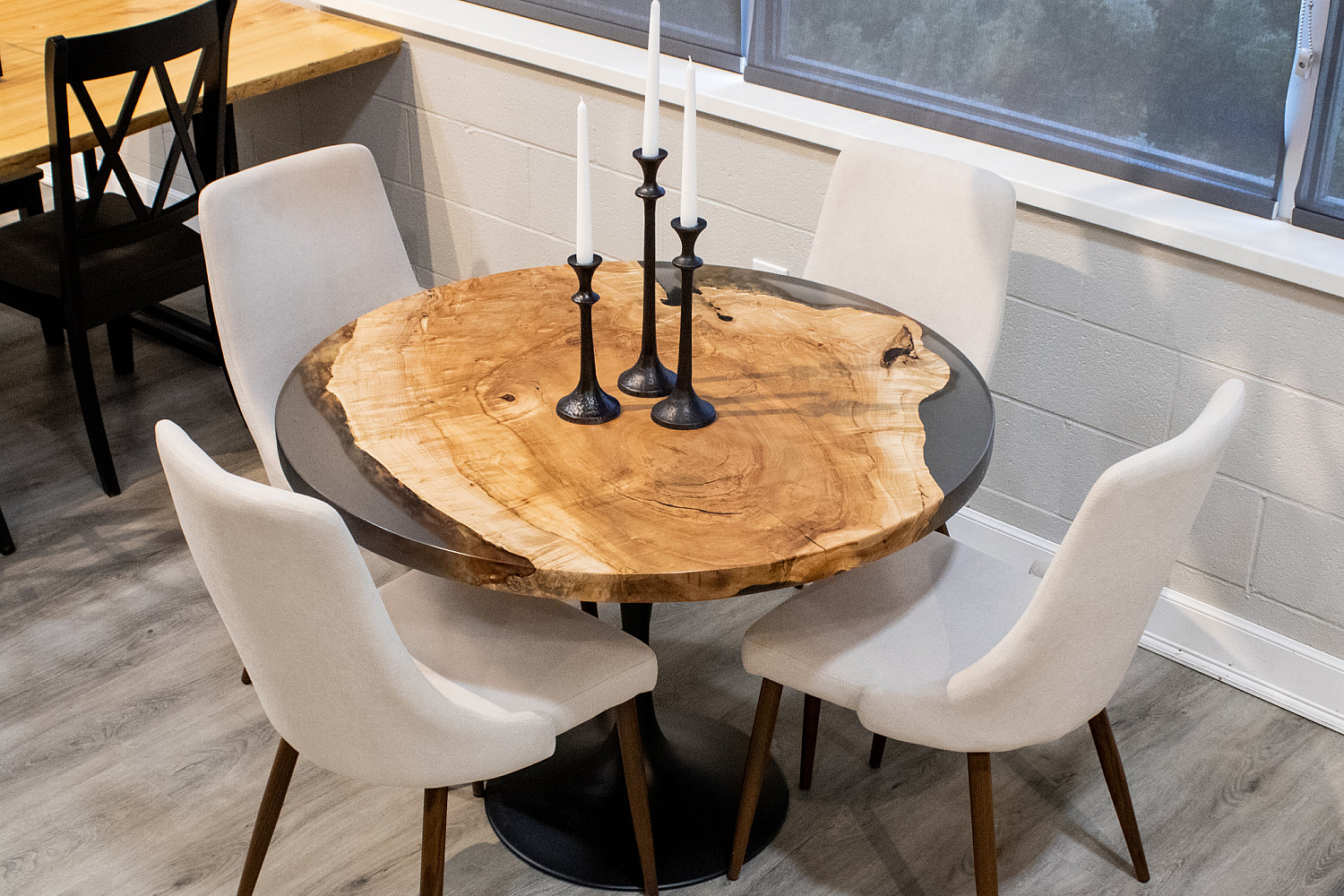 Our wood slabs are locally sourced and carefully dried in-house, guaranteeing authenticity and quality in every live edge table.
